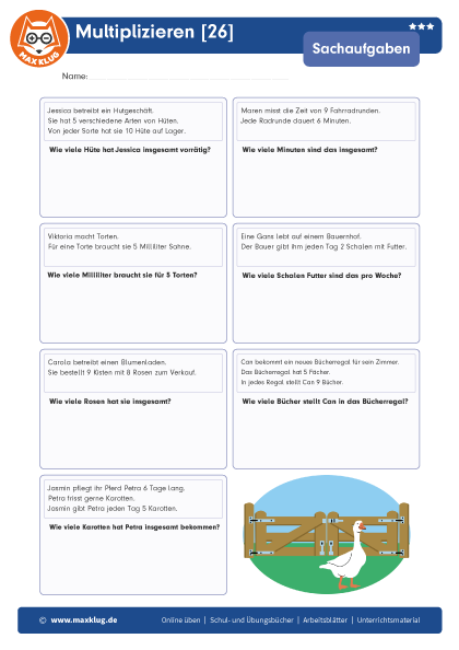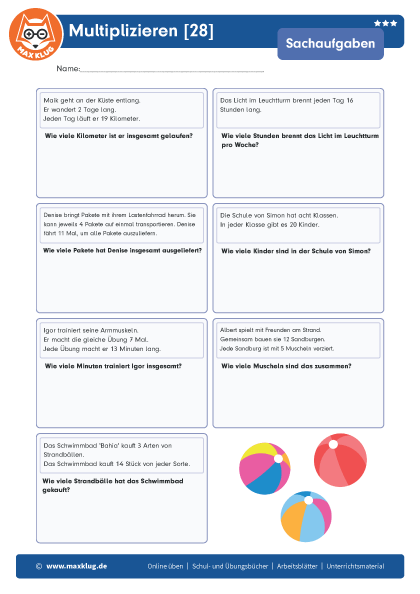 Sachaufgaben und Textaufgaben zum Multiplizieren bieten eine ausgezeichnete Möglichkeit, das mathematische Verständnis der Schüler zu erweitern. Unsere Arbeitsblätter sind so gestaltet, dass sie den Lernprozess unterstützen und gleichzeitig die Motivation der Schüler fördern.