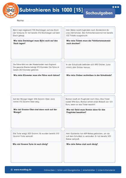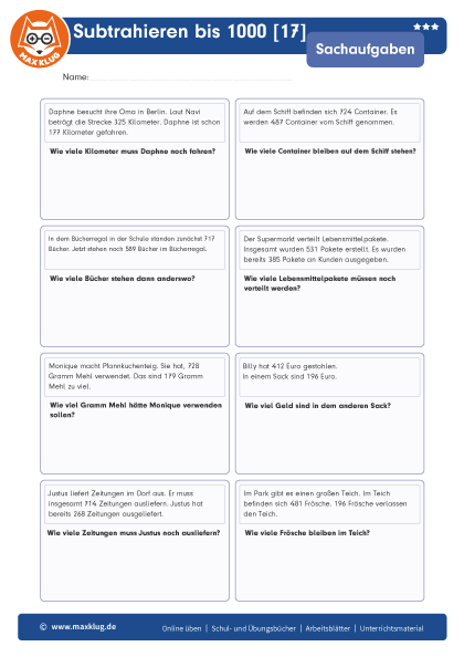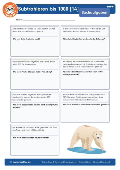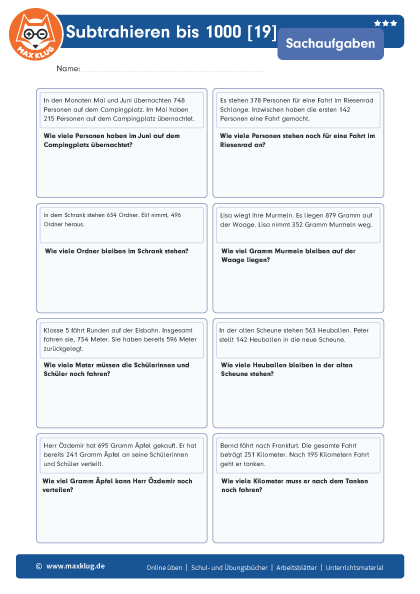Subtrahieren bis 1000