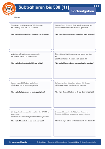 Subtrahieren bis 500 [11]