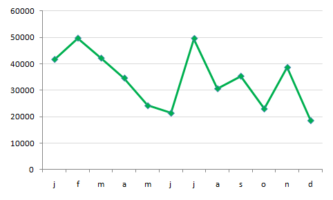 Was ist ungefähr der Unterschied zwischen dem ruhigsten und dem vollsten Monat?